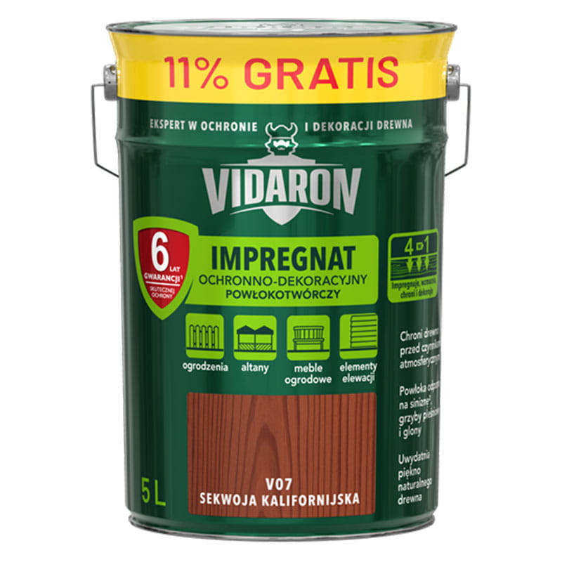 VIDARON Impregnat Ochronno-Dekoracyjny Powłokotwórczy Sekwoja Kalifornijska V07 5L