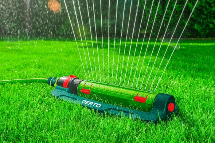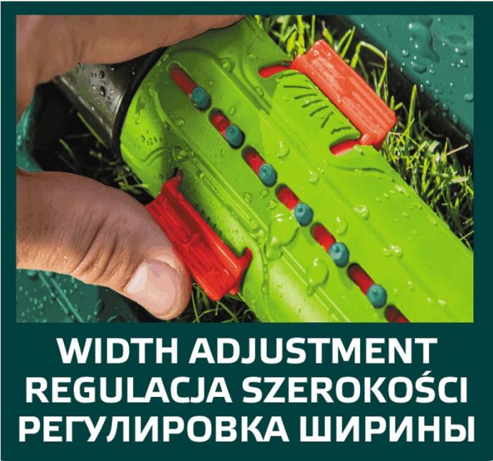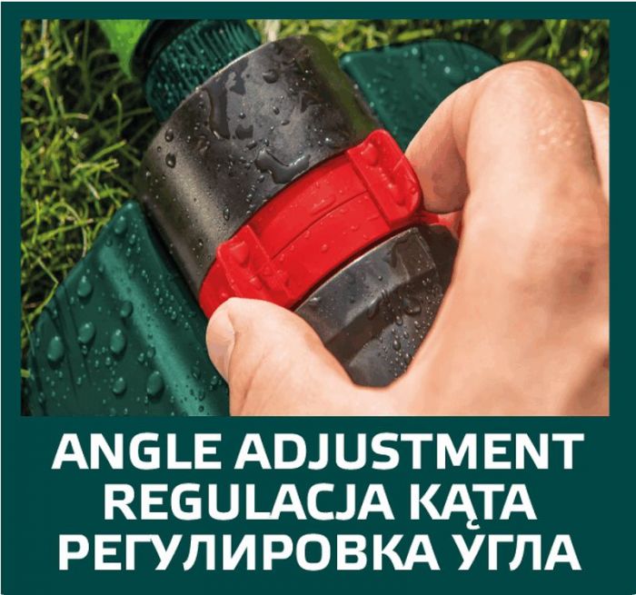 Zraszacz oscylacyjny VERTO (nr ref. 15G772) został wykonany z trwałego tworzywa odpornego na zniszczenie. Umożliwia wygodne zraszanie powierzchni do 418 m2. 18 dysz zraszających kieruje strumienie wody na obszarze kształtem odpowiadającym prostokątowi, a regulacja dysz umozilwia ustawienie nie tylko zasięgu ale również szerokości zraszania. W zestawie igła do udrażniania dysz.
